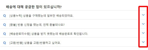 배송에 대해 궁금한 점이 있으시면 아래에 있는 `상품누락`,`환불`,`배송완료미수령`,`교환/반품`을 통해 자세히 확인하실 수 있습니다.