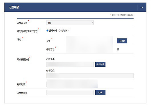 아래 부분에 보시면 신청내용이 보이고 본인의 성함과 생년월일, 주소와 전화번호를 적어줍니다.