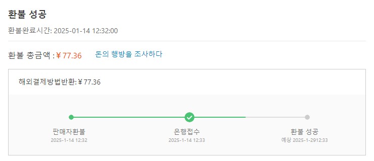 중국 내에서 바로 받고 돌려보내는 것이 아니기 때문에 발송이 되어 환불을 받으려면 절차가 복잡해집니다. 그렇기 때문에 주문취소를 하더라도 판매자가 제품을 발송하기 전에 취소하는 것이 중요합니다.